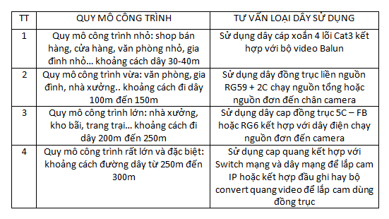 1. Tư vấn các loại dây cho các hệ thống camera