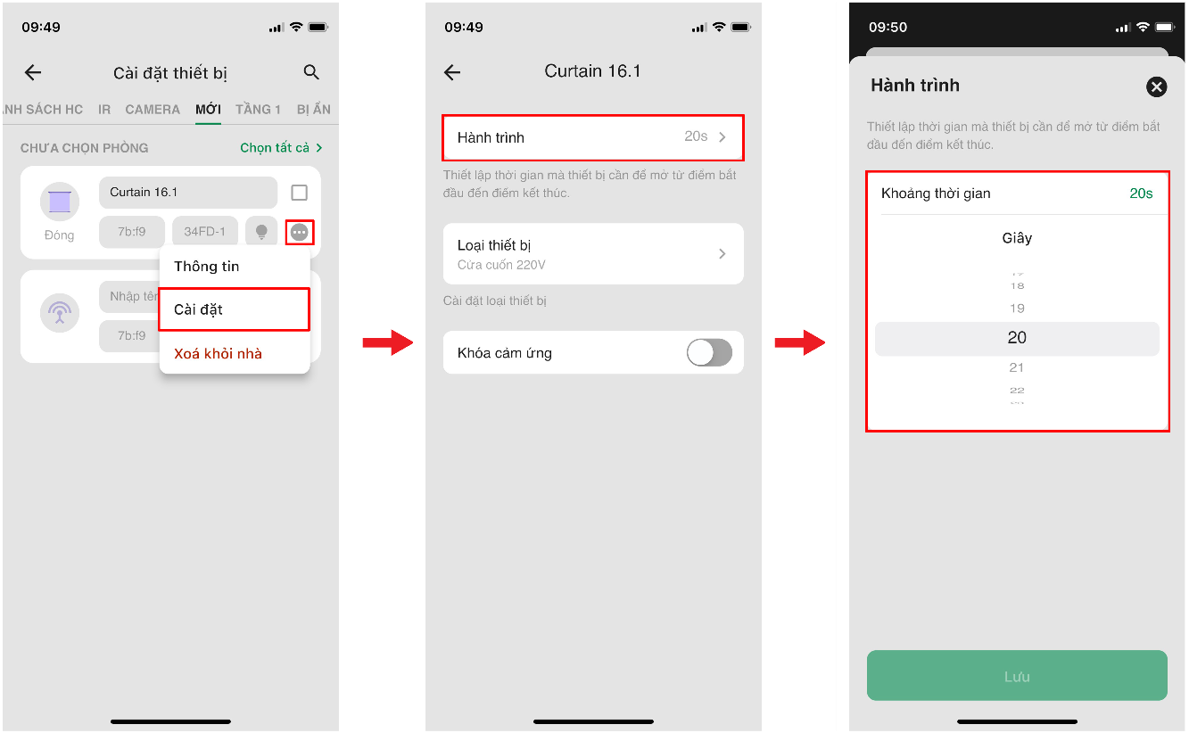Công tắc rèm Luto có hỗ trợ tính năng cài hành trình bằng thời gian đóng, mở rèm.