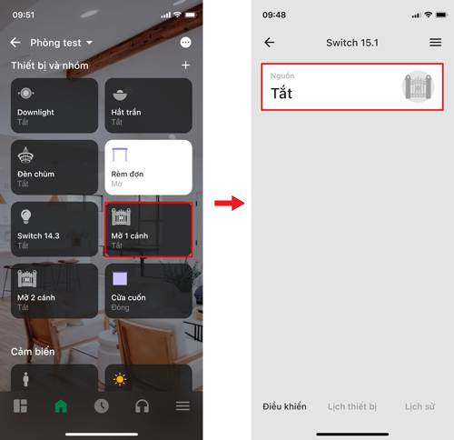 - Chọn thiết bị làm Target (Công tắc cửa cuốn phụ)