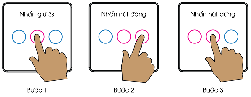 Nhấn nút số 3, lúc này Led trên nút số 2 và số 3 sẽ sáng hồng để báo hiệu đang học hành trình đóng.