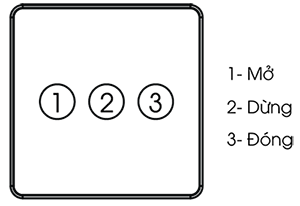 - Để điều khiển mở/dừng/đóng: Sau khi mở khóa công tắc, nhấn giữ 500ms vào nút cảm ứng muốn điều khiển, led sẽ nháy xanh 2 lần báo hiệu nhấn giữ đủ 500ms, sau đó người dùng có 1.5s để nhả tay ra nếu muốn xác nhận điều khiển, giữ quá 1.5s thao tác điều khiển sẽ bị hủy bỏ
