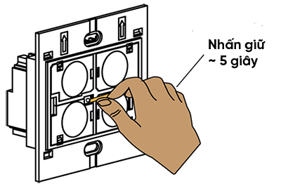 Bước 1: Nhấn giữ cảm ứng của nút bất kỳ trên công tắc rèm muốn xóa Binding trong vòng 10s