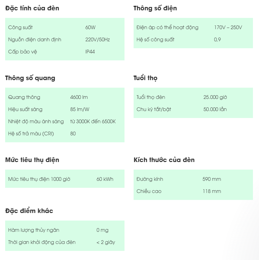 - Tuổi thọ 25000h, Chỉ số bảo vệ IP 44; ít phải thay thế, dễ dàng lắp đặt