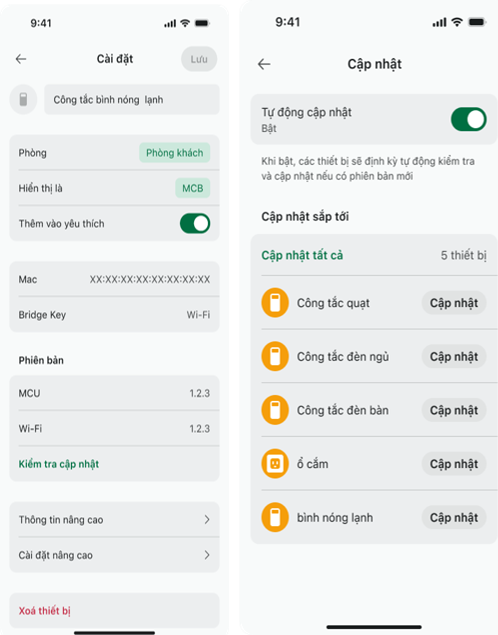 Hỗ trợ tự động cập nhật phần mềm cho thiết bị trên APP.