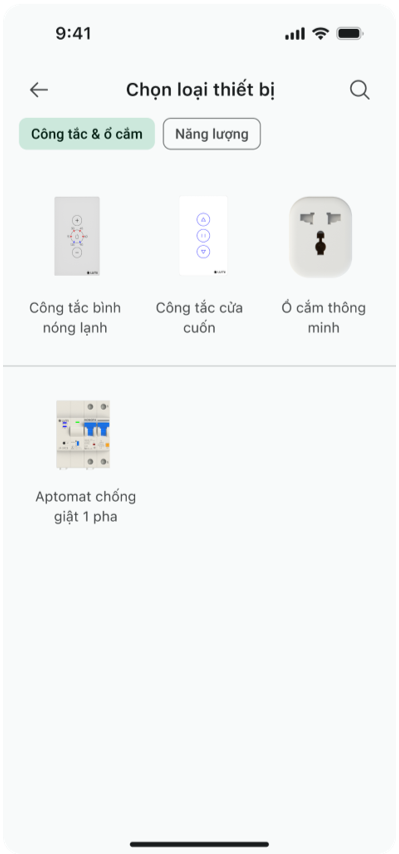 Thiết bị hỗ trợ chọn loại cửa cuốn trên App: