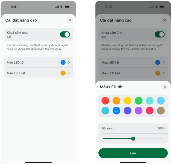Sau khi khóa cảm ứng, người dùng sẽ không thể bật/tắt bằng tay và chỉ có thể điều khiển bằng App Lumi Life.