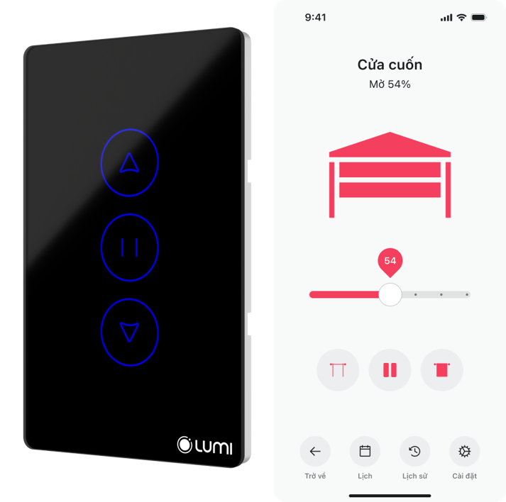 - Thiết bị công tắc cửa cuốn WIFI của Lumi hỗ trợ điều khiển động cơ cửa cuốn.