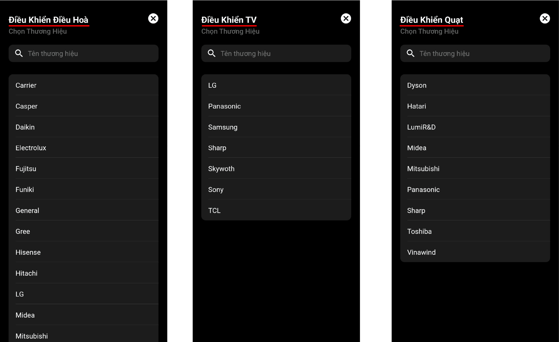 Bước 2: Chọn thương hiệu tương ứng đối với điều khiển lệnh có sẵn.