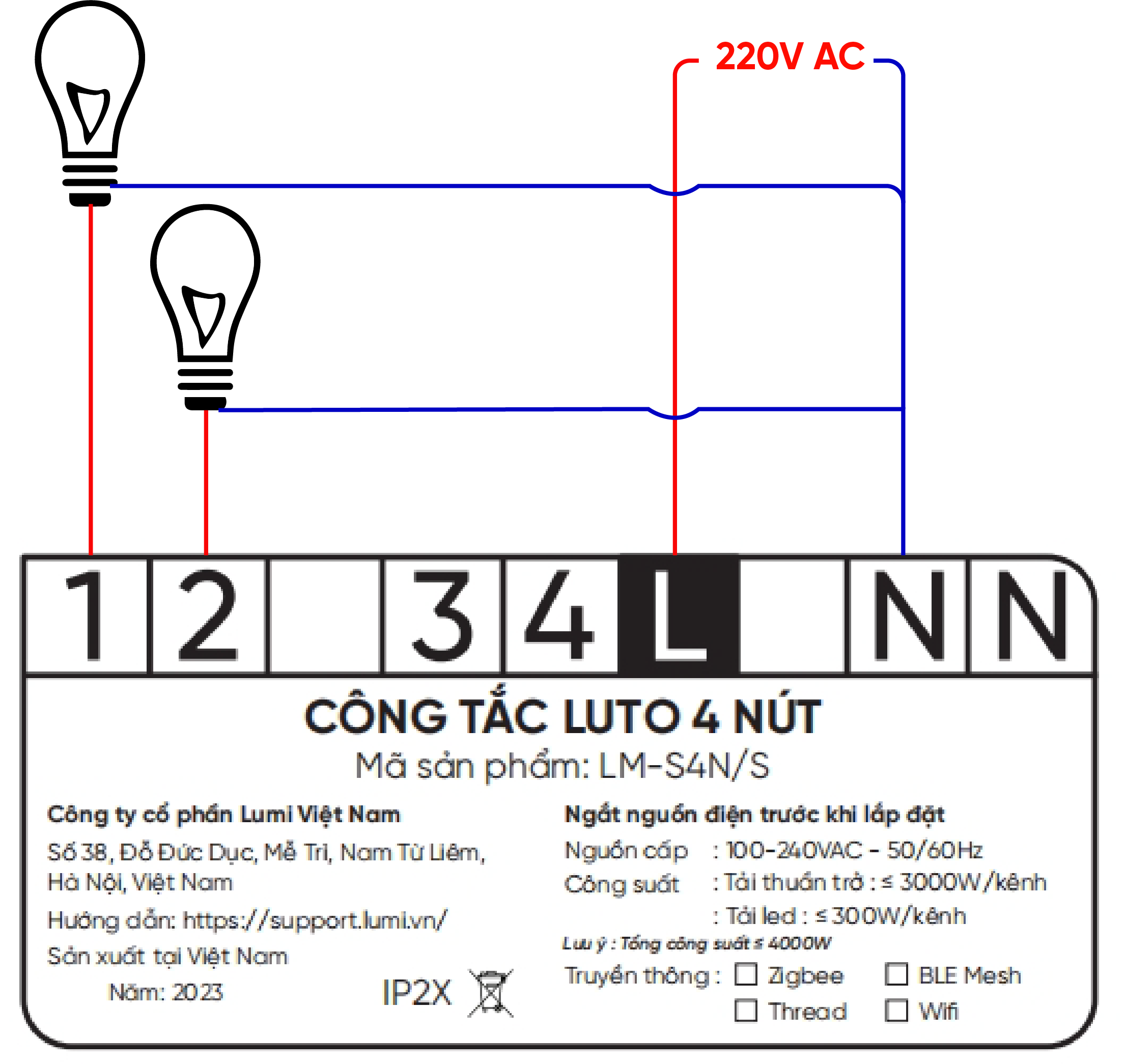- Công tắc chỉ hỗ trợ truyền thông không dây Zigbee.