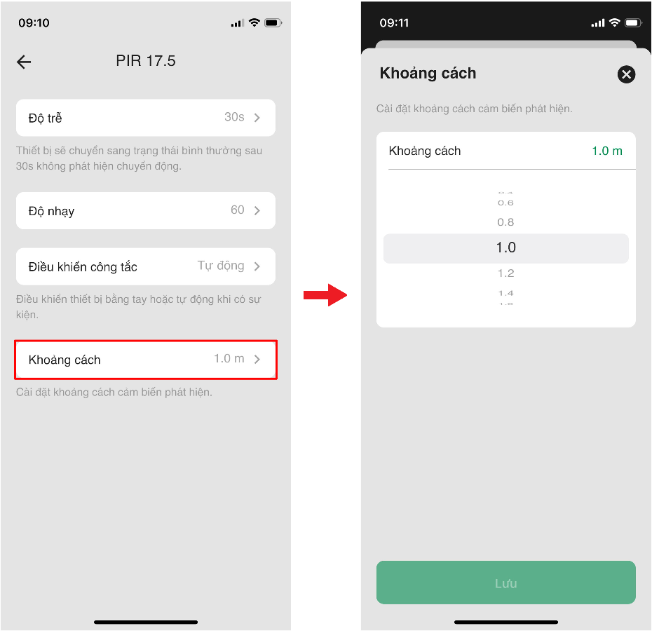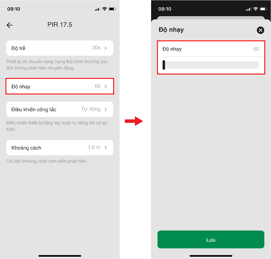 Điều chỉnh độ nhạy của cảm biến Radar để phù hợp với thực tế công trình.