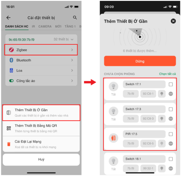Người dùng đăng nhập vào App Lumi Life+ => Chọn “Cài đặt” => Chọn “Cài đặt thiết bị” => chọn HC => Zigbee => Chọn “Gia nhập mạng”.