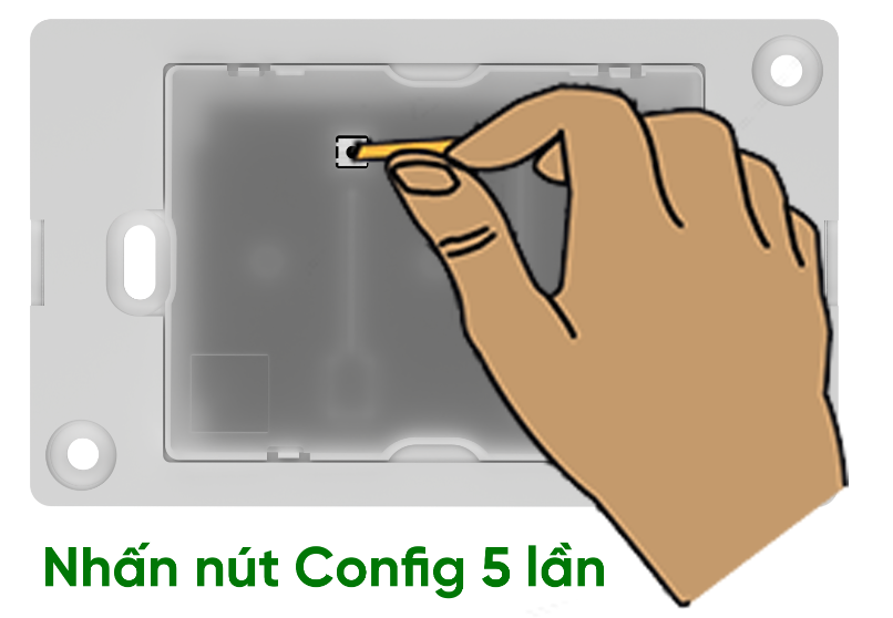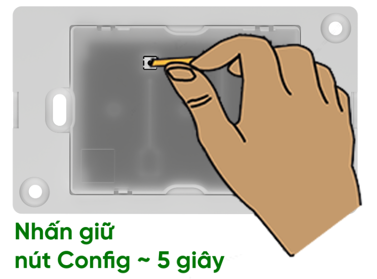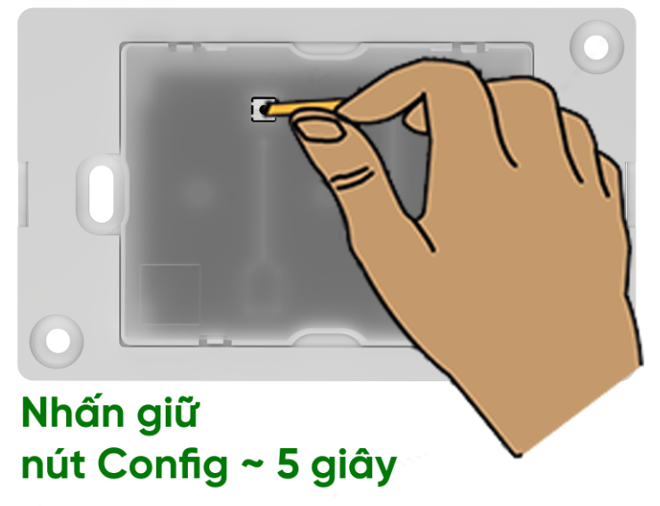 ➔ Nhấn giữ nút config trong khoảng 5s đến khi led nháy đỏ 2 lần thì nhả ra.