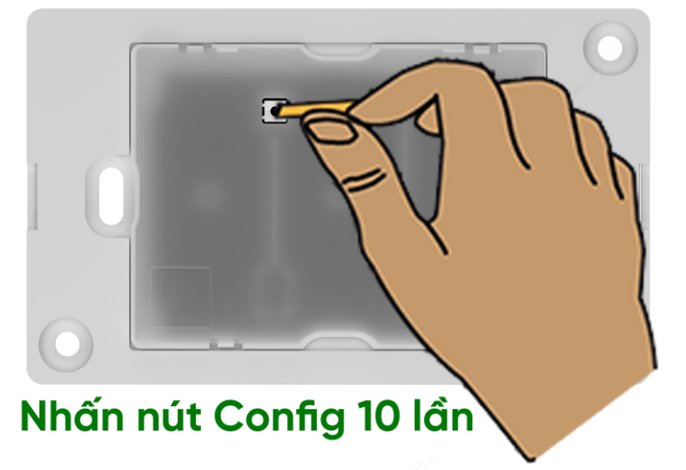 Để reset mạng thiết bị người dùng ấn nhanh nút Config 5 lần. Sau khi hoàn tất quá trình Reset đèn Led trên công tắc sẽ nháy hồng 3 lần.