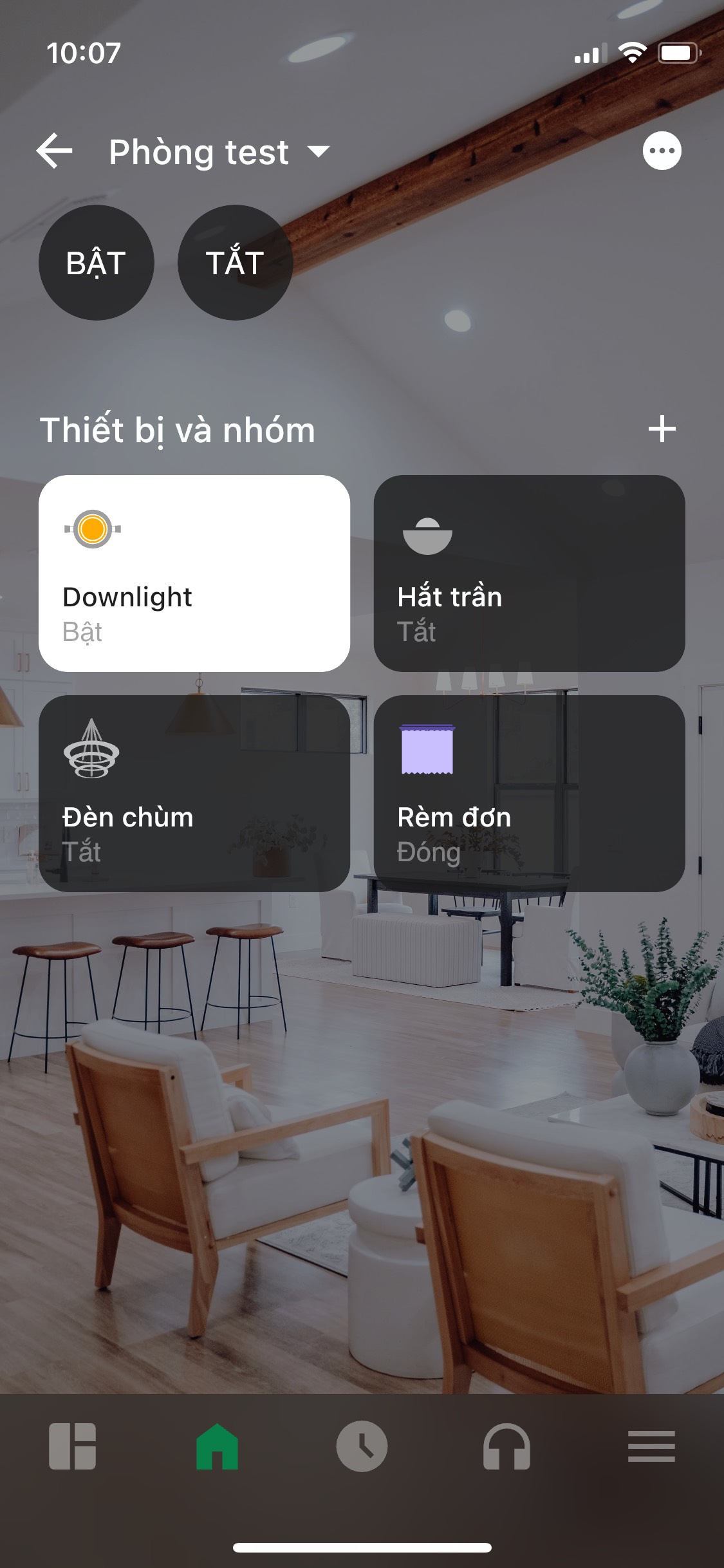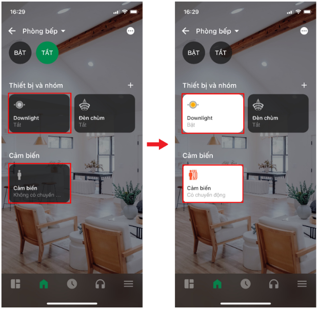 Tương tự như bật/tắt các công tắc khác, người dùng chạm vào icon thiết bị để điều khiển bật/tắt.