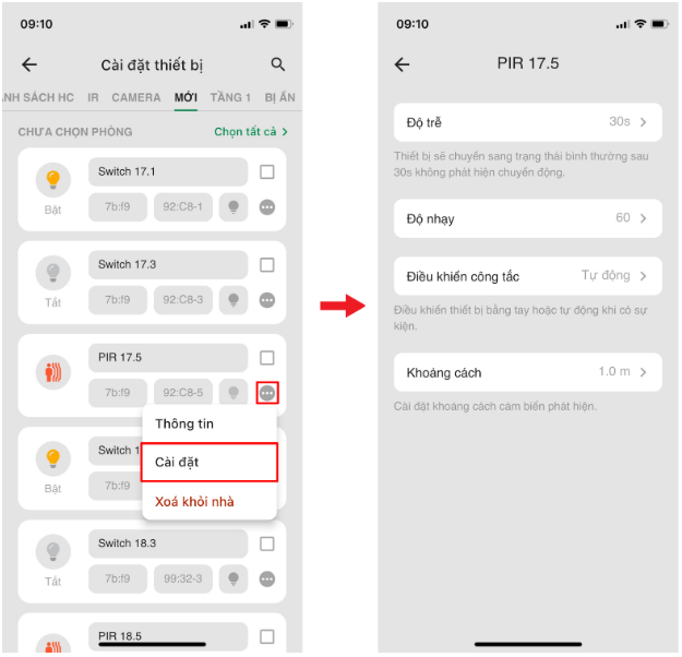 (Chi tiết xem hướng dẫn cài đặt điều khiển thiết bị ở phần dưới).
