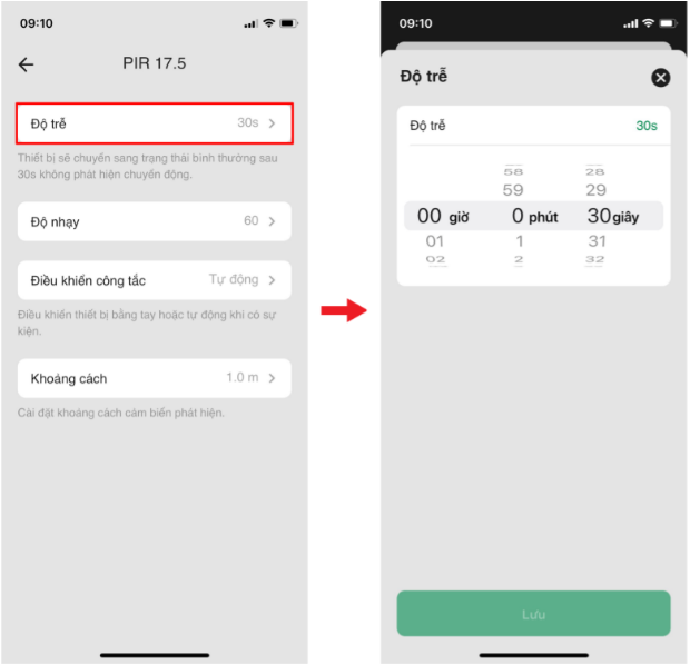 - Độ trễ cấu hình trong khoảng (10-3600 giây).