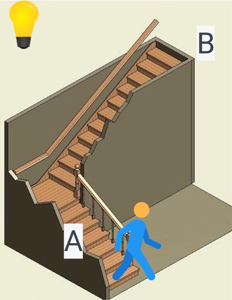 Thiết bị công tắc cầu thang tích hợp cảm biến có 2 góc quét phát hiện chuyển động.