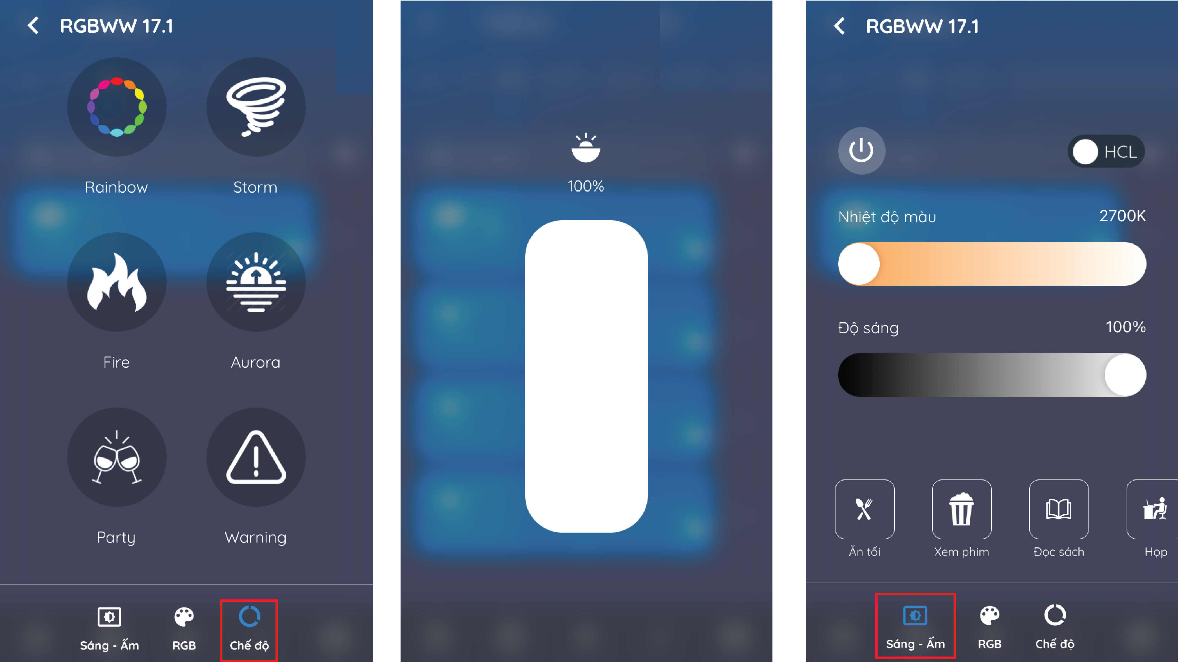 - RGB & WW: RGB sáng vàng 12% - WW sáng vàng 12%.