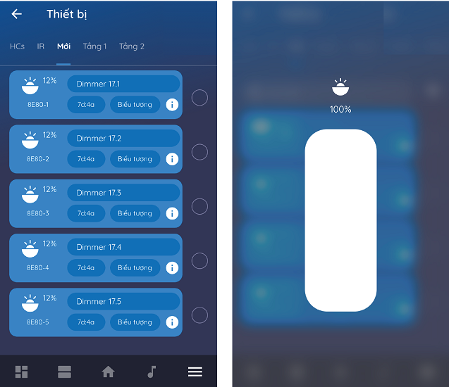 - Điều khiển theo nhóm Lighting, HCL, cảnh Lighting, Rule, Cảnh, Lịch.