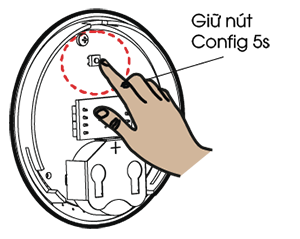 Nhấn giữ nút Config trong 5s cho đến khi đèn chỉ thị sáng hồng thì thả tay.
