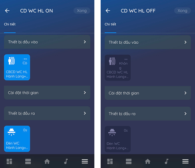Đối với cảm biến chuyển động người dùng có thể cài đặt Rule tự động bật/tắt thiết bị khác trong nhà hoặc cài đặt các Rule tự động khác theo ý muốn.