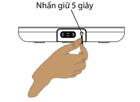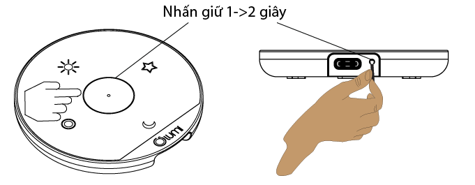 Tiếp theo, người dùng nhấn giữ nút Config (hoặc biểu tượng chính giữa thiết bị) khoảng 1->2 giây, đến khi Led nháy xanh 2 lần thì nhả tay.
