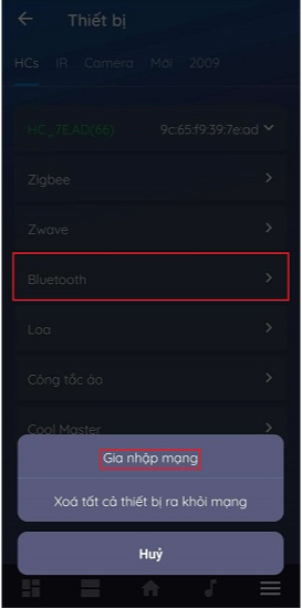 Người dùng đăng nhập vào App Lumi Life => Chọn “Cài đặt” => Chọn “Cài đặt thiết bị” => chọn HC => Bluetooth => Chọn “Gia nhập mạng”.