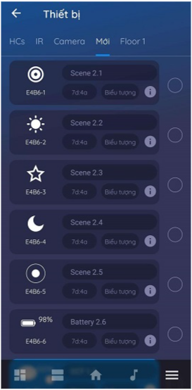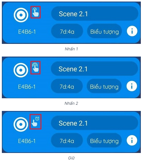 Thiết bị có 5 nút cảnh và mỗi nút cảnh có thể gửi lên trên App 3 loại sự kiện, đó là: Nhấn 1 lần, Nhấn 2 lần và Giữ.